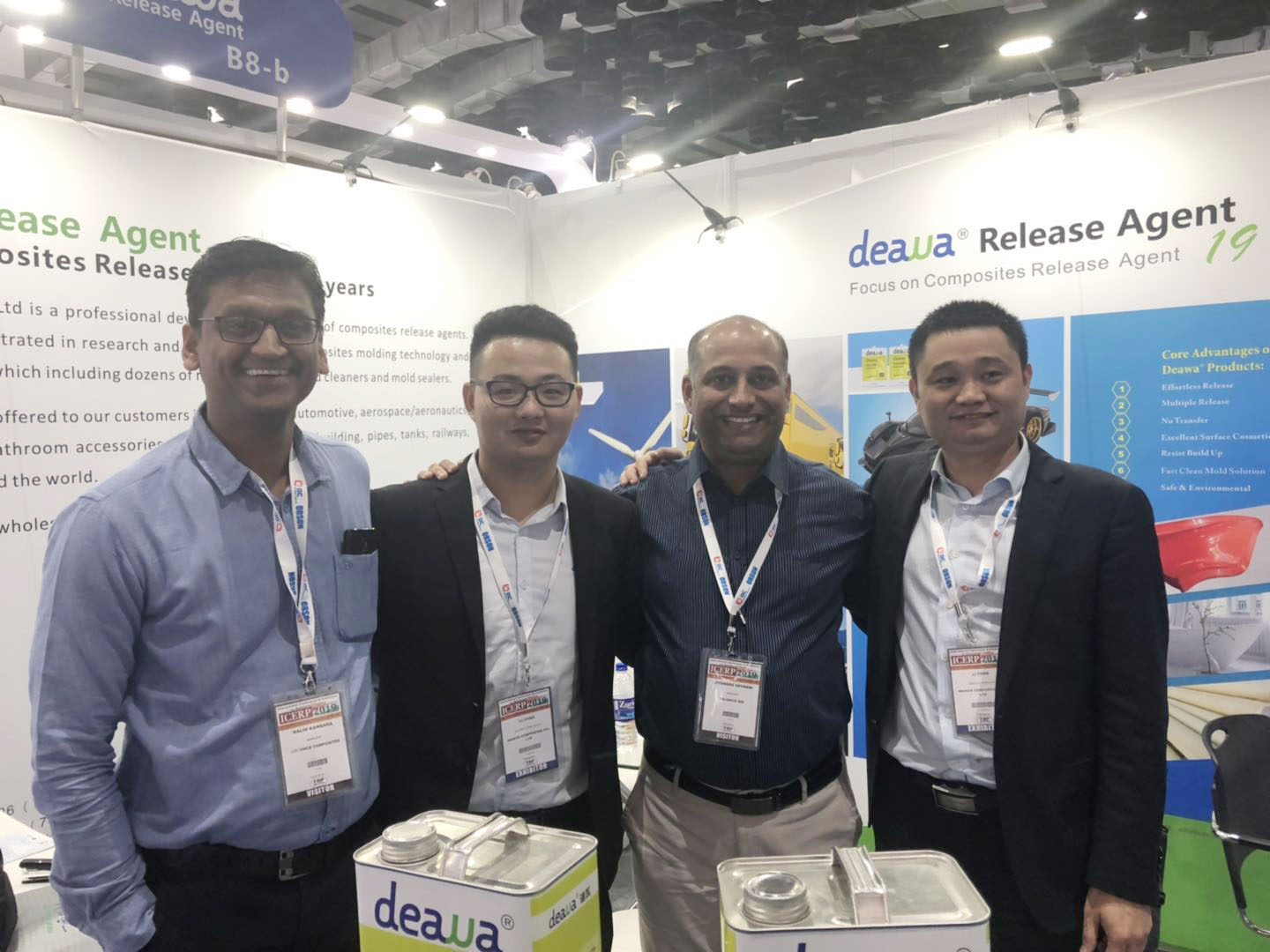 2019年1月10日~12日第八屆印度復(fù)合材料展ICERP在孟買展覽中心盛大開幕。迪瓦再次以“好脫模、用迪瓦、一兩拔千斤”為主題,攜多款優(yōu)質(zhì)的脫模劑、潔模劑、封孔劑產(chǎn)品,站在世界的舞臺上展示“中國復(fù)材脫模劑”的品牌與實力。